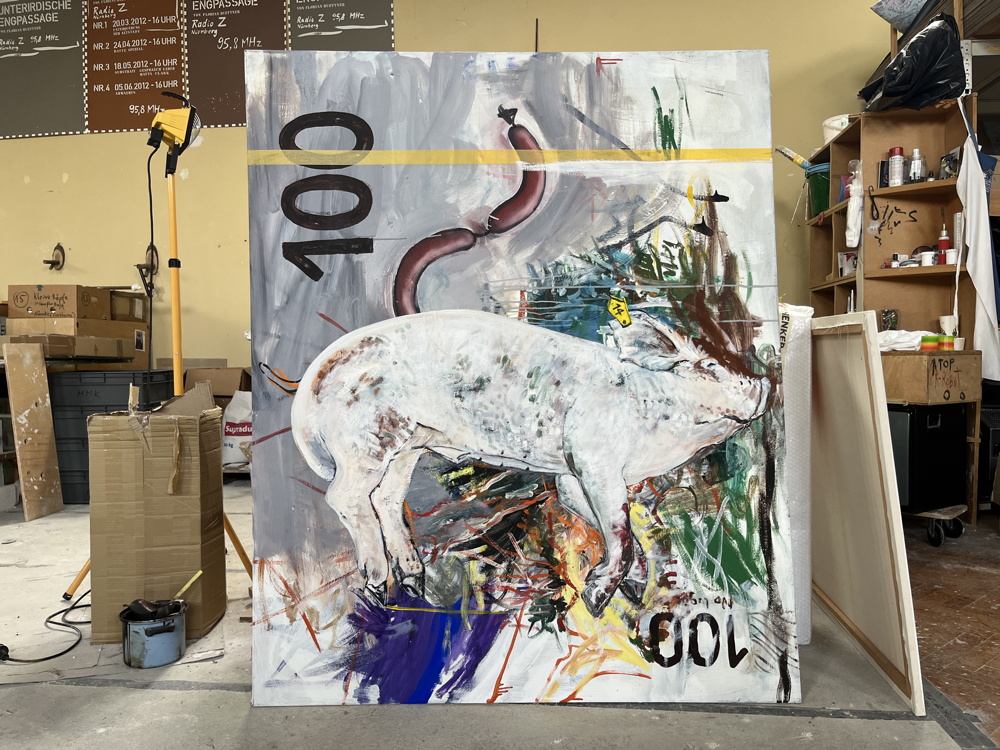 - Murphy "Murphy's Egg", oil and acrylic on canvas, 109 x 149 cm 2025 >> 7.800 €